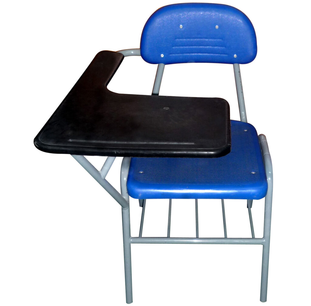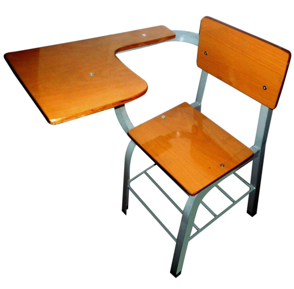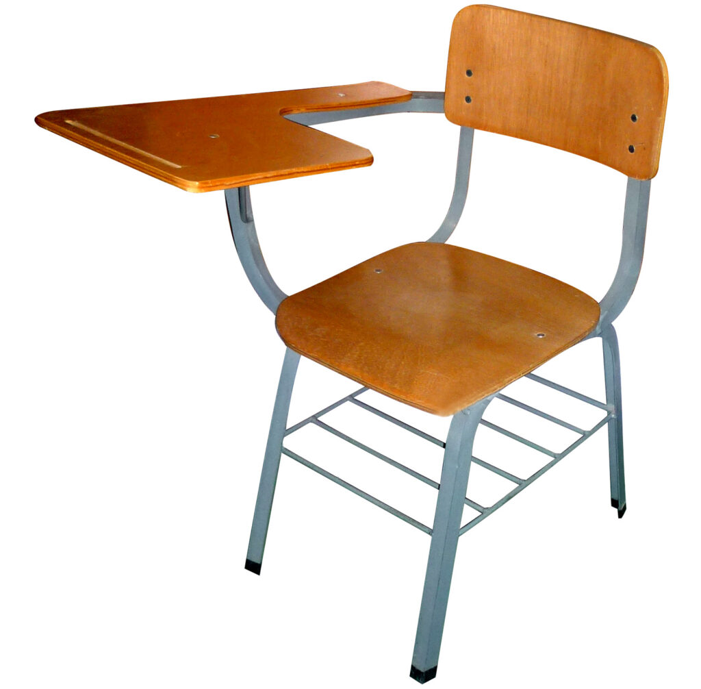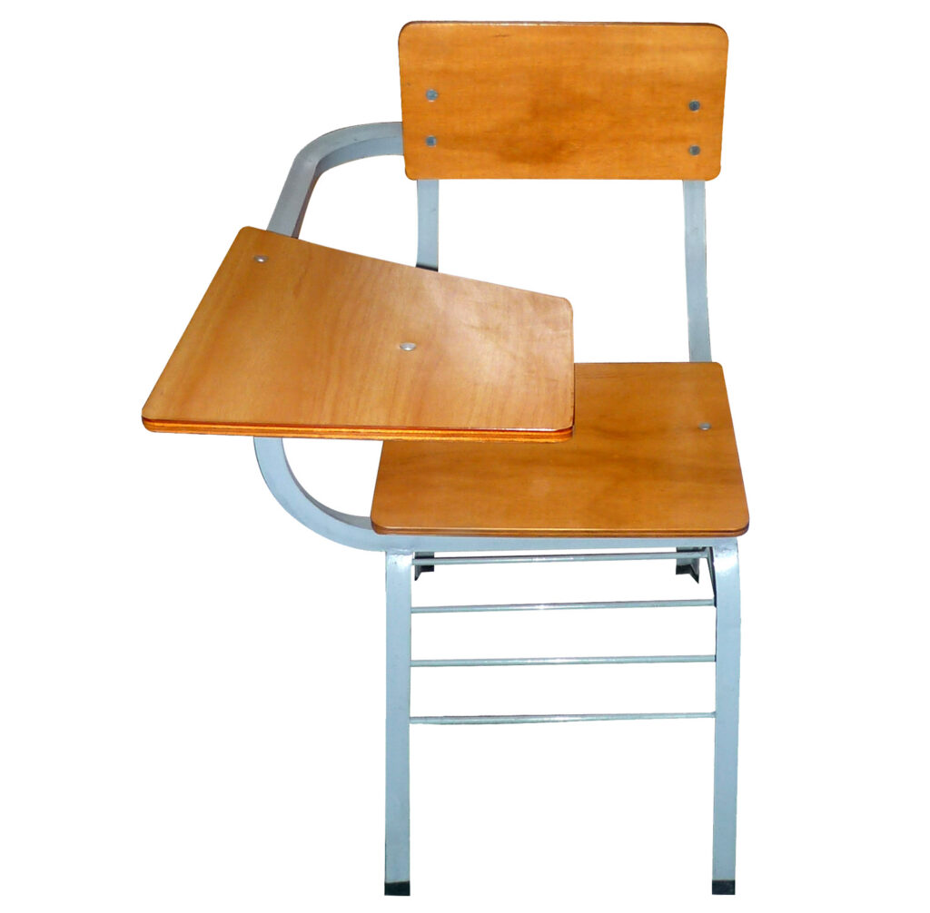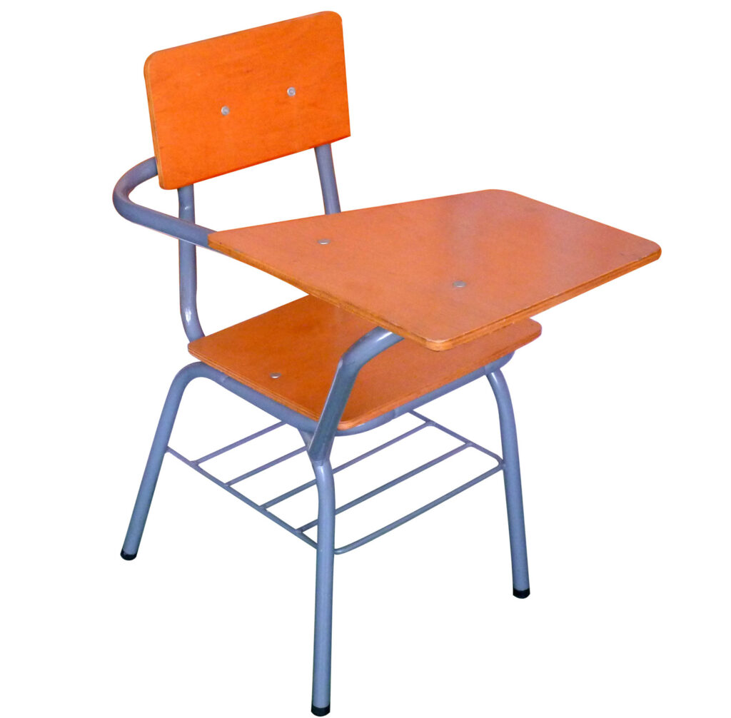 silla universitaria en ángulo y madera plana